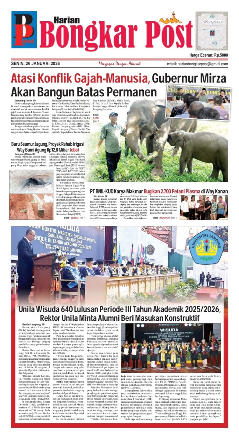 Langit Lampung Membara: Misteri Benda Bercahaya yang Bikin Warga Heboh, Ternyata Sampah Antariksa dari Roket China Prabowo Sebut Penyiraman Air Keras terhadap Aktivis KontraS Andrie Yunus sebagai “Terorisme”: Minta Diusut Tuntas hingga Aktor Intelektual Aktivis KontraS Andrie Yunus Disiram Diduga Air Keras, Empat Anggota BAIS TNI Diamankan Puspom Jalan Rusak di Bandar Negeri Suoh–Pagar Dewa Viral, Infrastruktur Lampung Barat Diuji Koordinasi dan Anggaran Tangis dan Protes Karyawan UDD PMI Lampung Iringi Pemberhentian Tiba-tiba dr. Mars Dwi Tjahyo