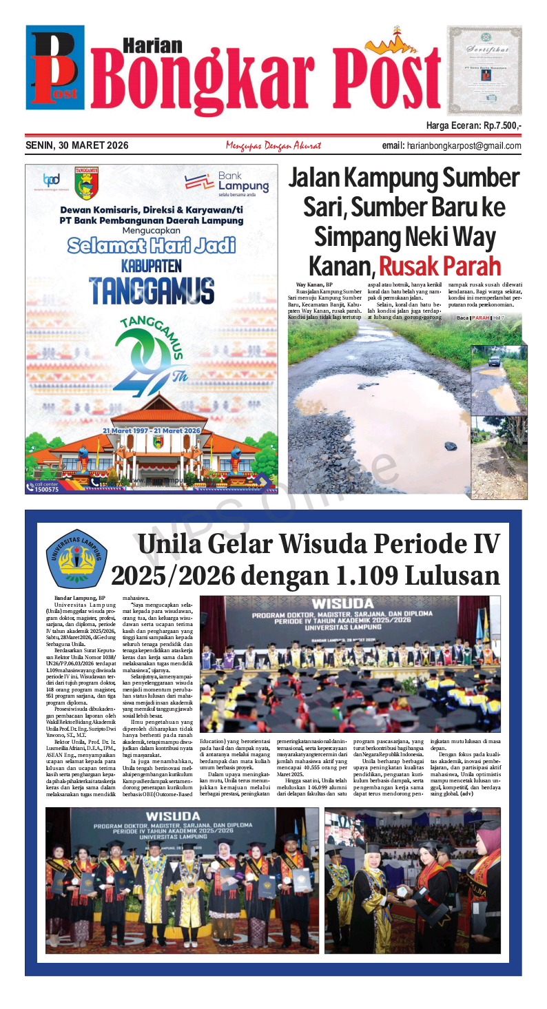 Langit Lampung Membara: Misteri Benda Bercahaya yang Bikin Warga Heboh, Ternyata Sampah Antariksa dari Roket China Prabowo Sebut Penyiraman Air Keras terhadap Aktivis KontraS Andrie Yunus sebagai “Terorisme”: Minta Diusut Tuntas hingga Aktor Intelektual Aktivis KontraS Andrie Yunus Disiram Diduga Air Keras, Empat Anggota BAIS TNI Diamankan Puspom Jalan Rusak di Bandar Negeri Suoh–Pagar Dewa Viral, Infrastruktur Lampung Barat Diuji Koordinasi dan Anggaran Tangis dan Protes Karyawan UDD PMI Lampung Iringi Pemberhentian Tiba-tiba dr. Mars Dwi Tjahyo