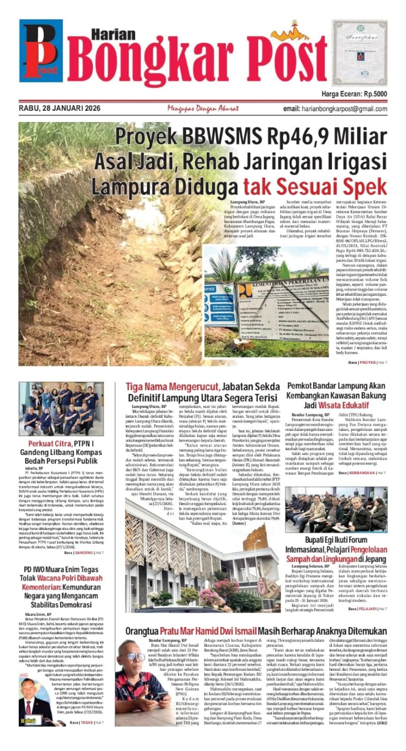 Langit Lampung Membara: Misteri Benda Bercahaya yang Bikin Warga Heboh, Ternyata Sampah Antariksa dari Roket China Prabowo Sebut Penyiraman Air Keras terhadap Aktivis KontraS Andrie Yunus sebagai “Terorisme”: Minta Diusut Tuntas hingga Aktor Intelektual Aktivis KontraS Andrie Yunus Disiram Diduga Air Keras, Empat Anggota BAIS TNI Diamankan Puspom Jalan Rusak di Bandar Negeri Suoh–Pagar Dewa Viral, Infrastruktur Lampung Barat Diuji Koordinasi dan Anggaran Tangis dan Protes Karyawan UDD PMI Lampung Iringi Pemberhentian Tiba-tiba dr. Mars Dwi Tjahyo