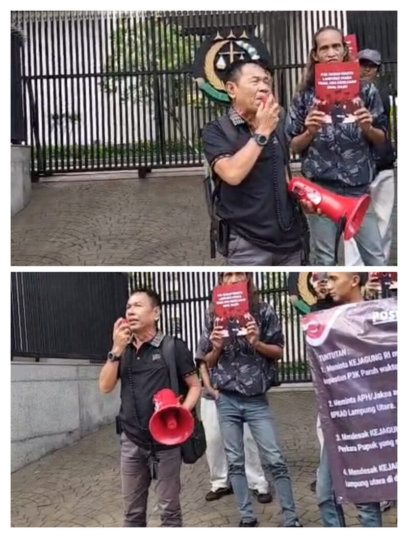 Jakarta, BP– Gelombang desakan penegakan hukum terhadap proyek rehabilitasi jaringan irigasi Way Bumi Agung BBA.4 Lampung Utara mencuat ke tingkat nasional. Sejumlah massa yang datang dari Lampung Utara menggelar aksi di depan Kejaksaan Agung Republik Indonesia, Selasa (10/2/2026).